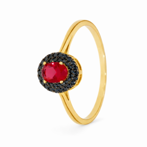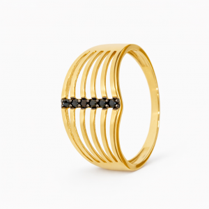 Złoty Pierścionek ażurowy z czarną cyrkonią 585